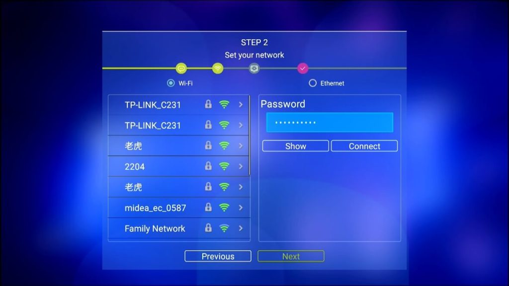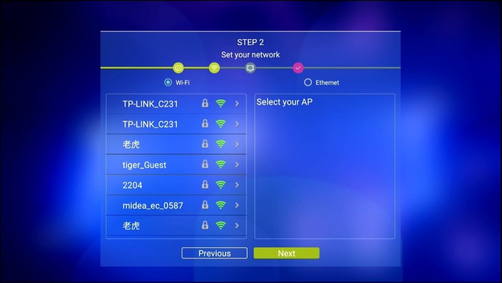 Step 2 – Select your internet connection (Either Ethernet or WiFi)