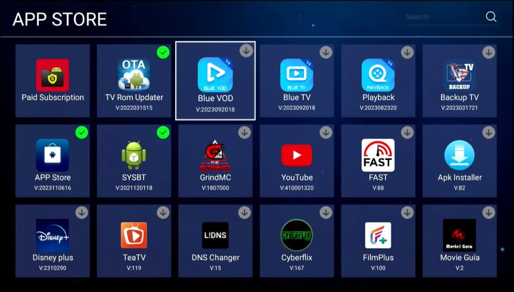 Step 5C – Click Blue TV, Blue VOD, Playback, Backup TV and other apps