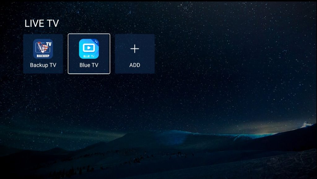 Return to the home screen, arrow to LIVE TV, and add the “Blue TV”